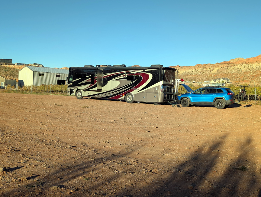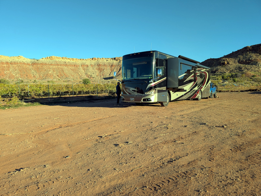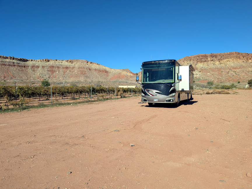 Rated as: Average. Zion Vineyards is located a few miles north of St George Utah just off the freeway They have two sites that are level dirt. The host met us when we arrived and pointed out our site location. They are a working vineyard and winery. There is a construction on going as they expand. The views, in all directions, are nice. We would stay there again. Rated as: Average.